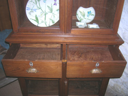 2 étagères dans la partie haute 1 étagère partie basse 2 grands tiroirs en façade