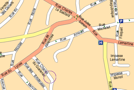 Parking réservé à la clientèle à l'arrière de la boutique, rue Charles du Quelenec